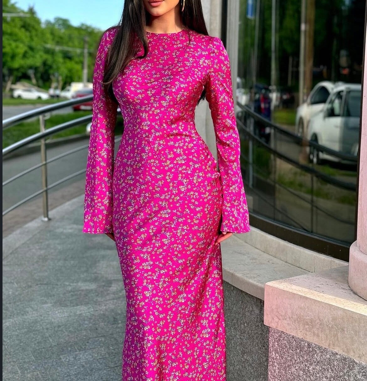 Das Model trägt das Kleid in der Standardgröße (S-M) und ist 175cm groß